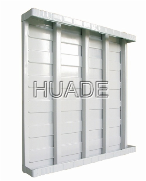 华德生产的整体式钢托盘零件全部由500吨油压机模具化生产而成,改变了钢托盘长期以来大部分由手工制作的历史。新颖的结构,严谨的设计使其同时具有自重轻、刚性和强度、承载能力大的特点;四向进叉使物流快捷,特有的防滑结构特别适用于托盘在货架上的定位与存放。根据不同承载货物的要求,本钢托盘形成轻型、标准型两个系列各九种尺寸规格,便于货物的运输和存储。